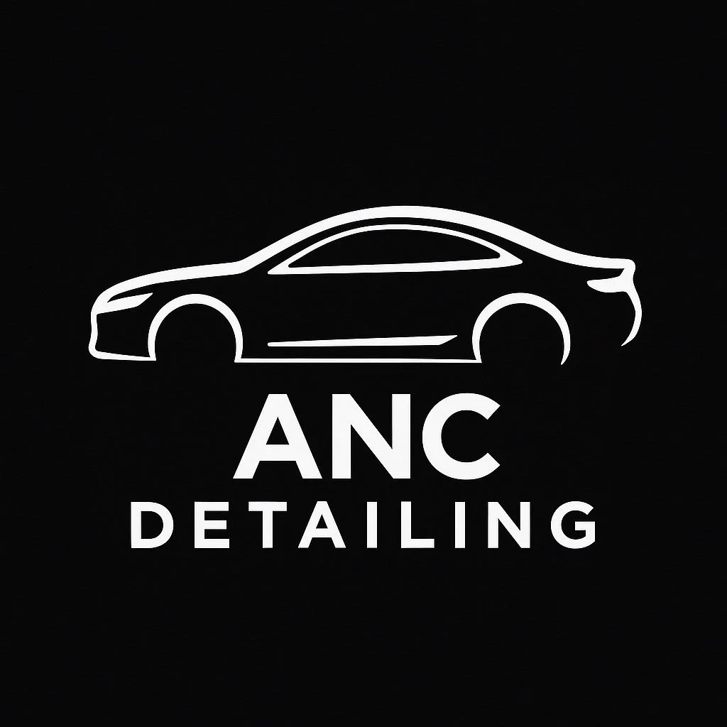 Logo for ANC Detailing featuring a white outline of a car above the text 'ANC Detailing' on a black background.